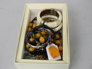 tumbled hardstone necklaces and bone bangles