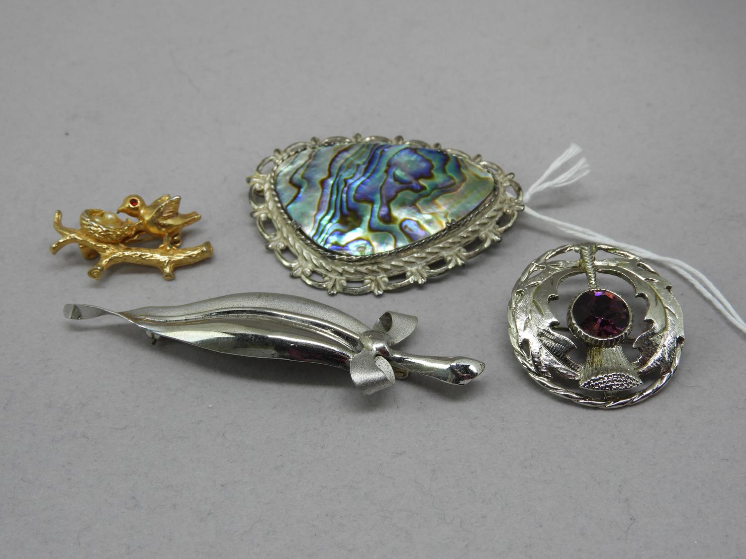 four vintage costume brooches.