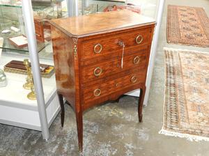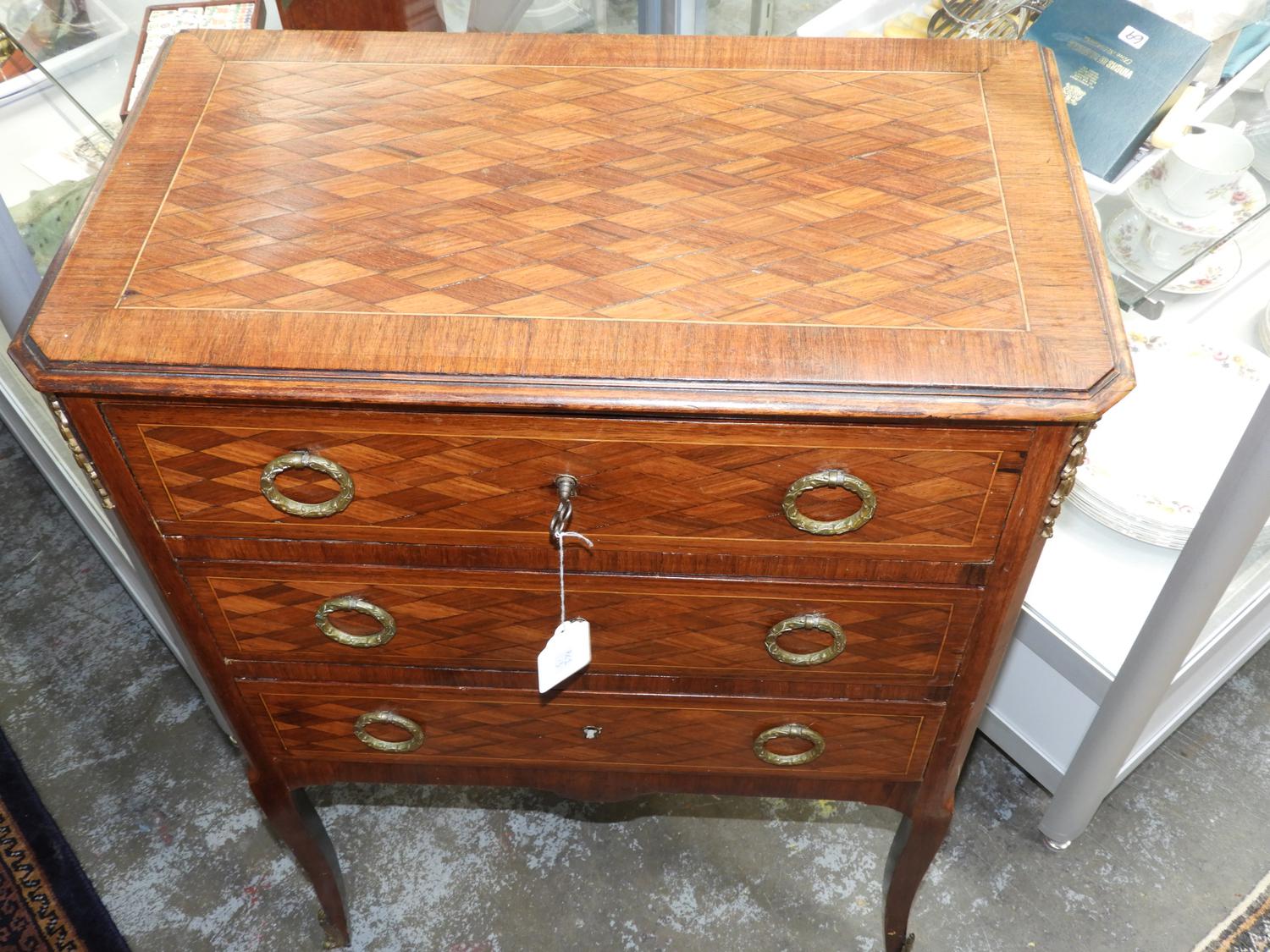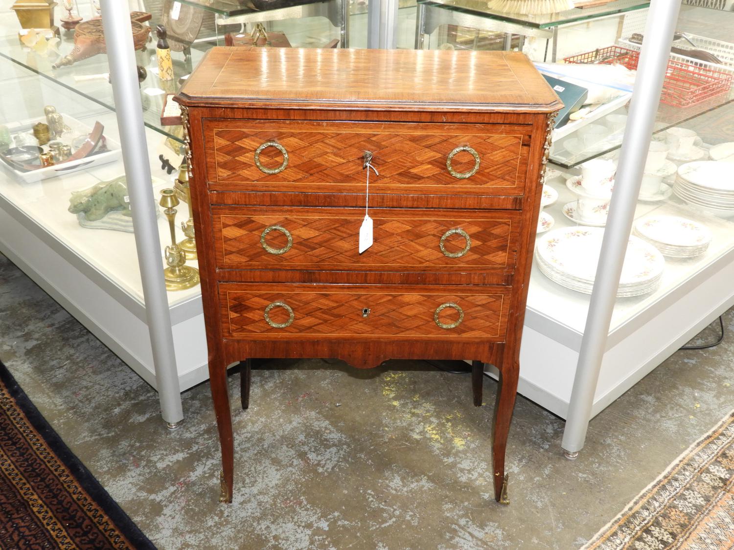louis xv-style parquetry inlaid 3-drawer side table, 19th century.