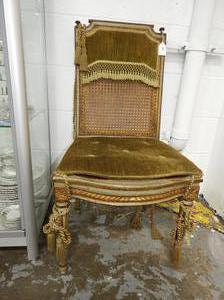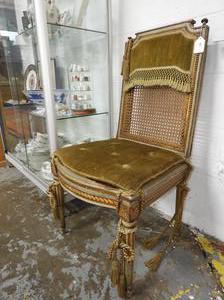 louis xvi-style parcel gilt side chair with loose cushions and tassels, 19th century.