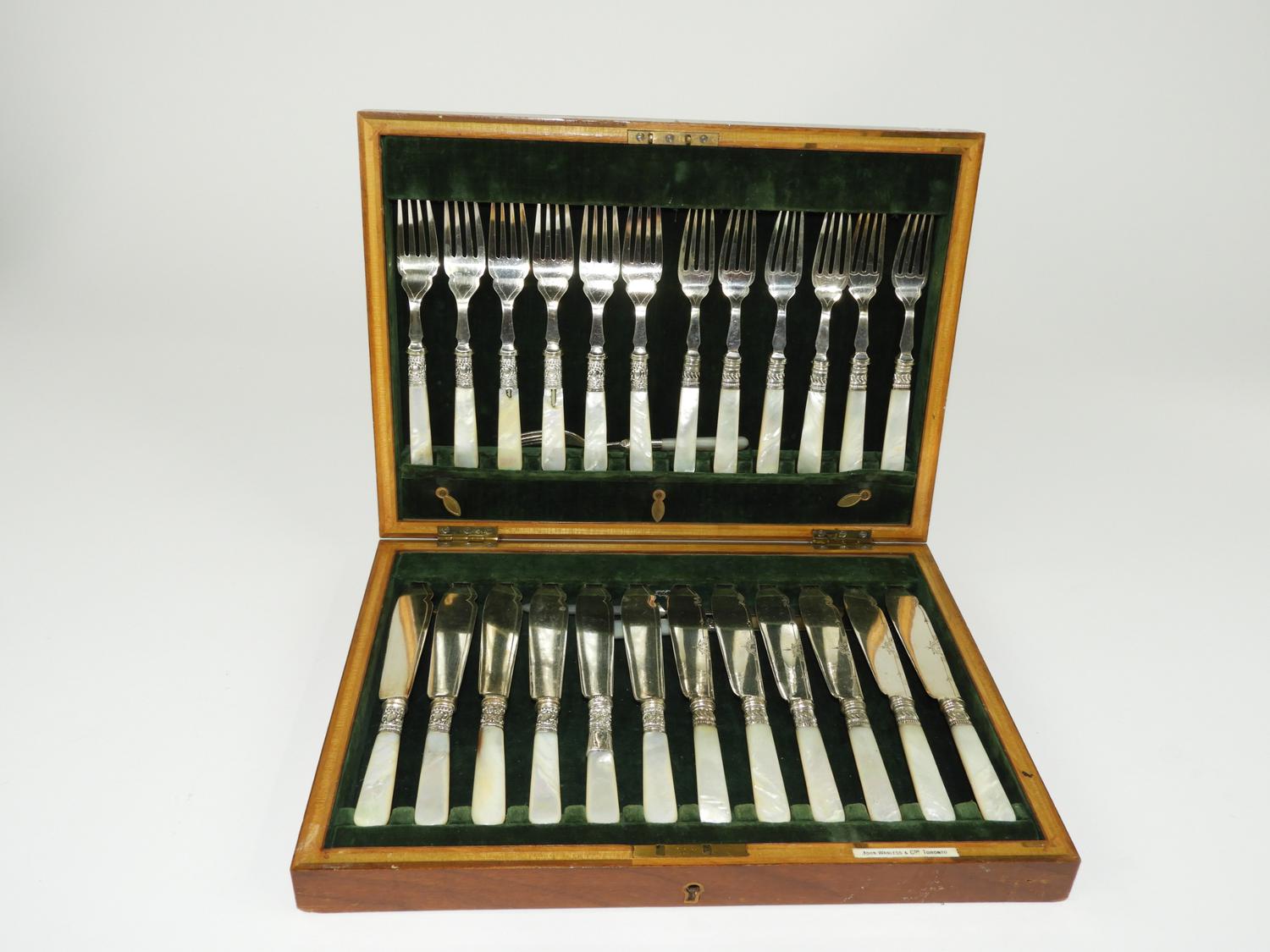 cased mother of pearl handled fish service, john wanless and co. toronto
